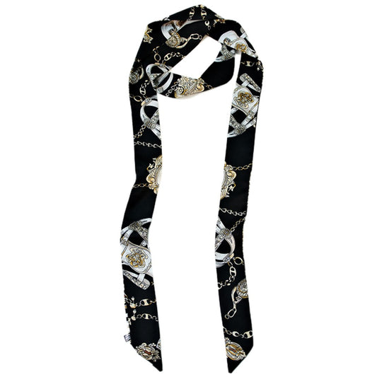 Satin Long Skinny Neck Scarf Necktie Headband Wrap Multi-Purpose Neckerchief - Geometric Print