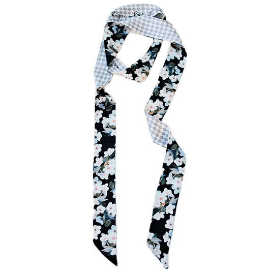 Satin Long Skinny Neck Scarf Necktie Headband Wrap Multi-Purpose Neckerchief - Floral Print